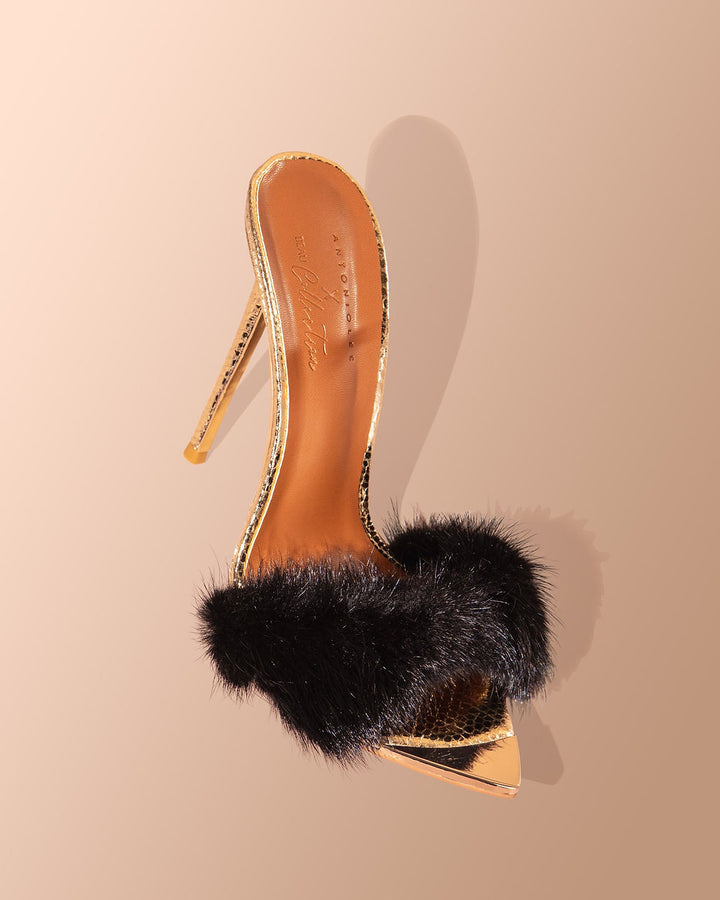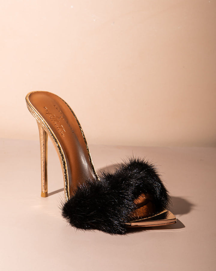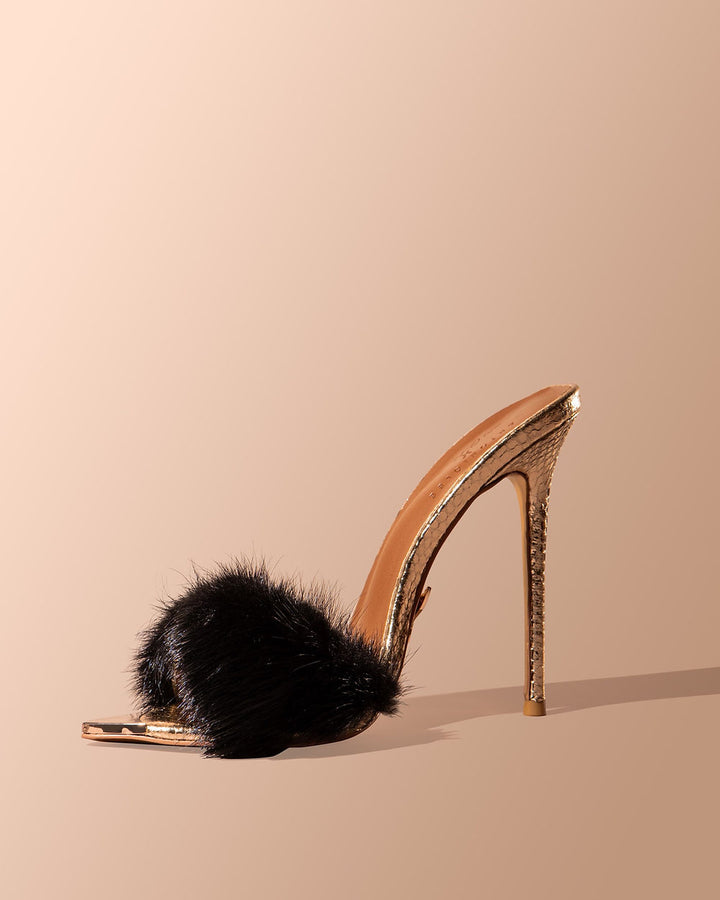 “Crafted from pure recycled mink, these heels redefine sustainable luxury—ethically elegant, timelessly exclusive, and designed for the conscious sophisticate.”